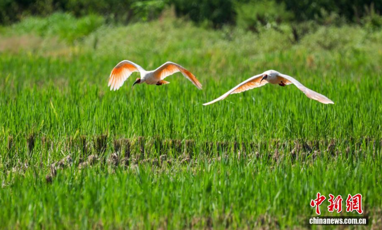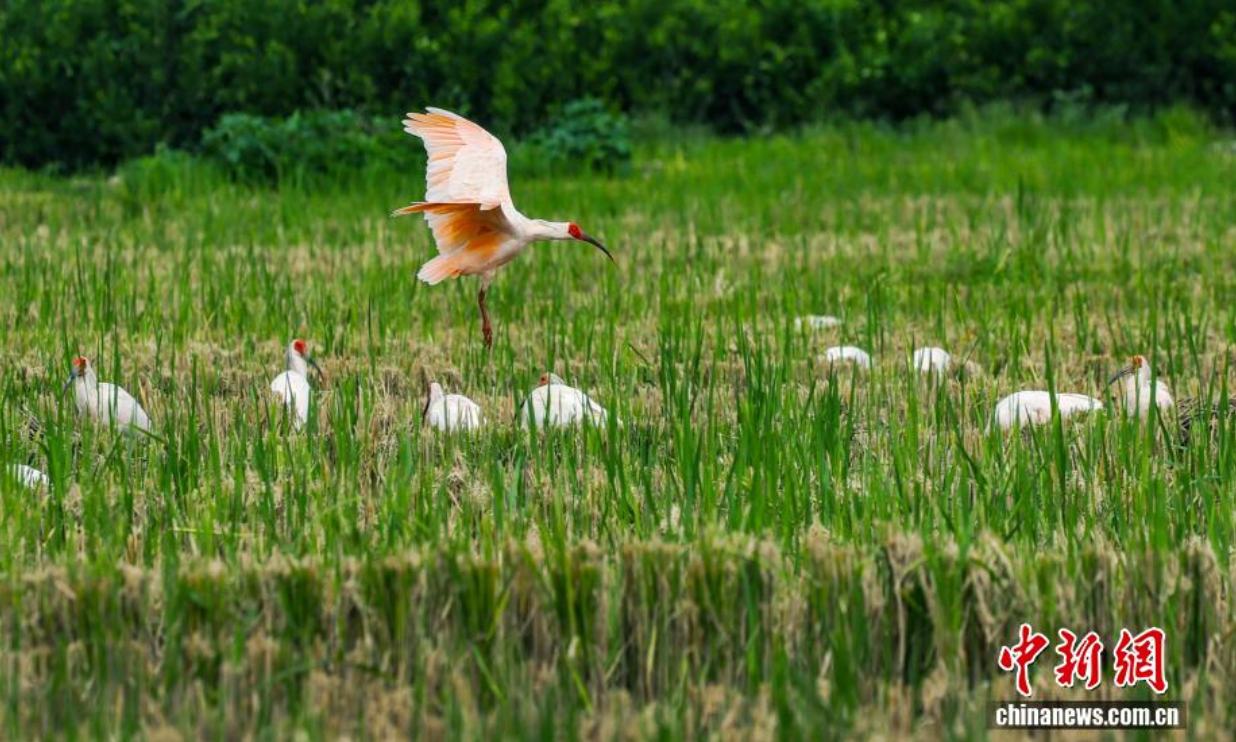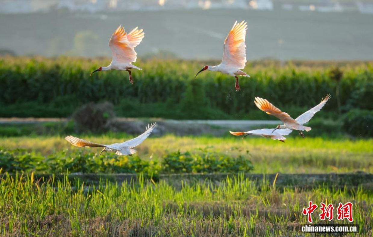 陜西漢中:金秋時節 秦巴稻田內朱鹮愜意飛舞