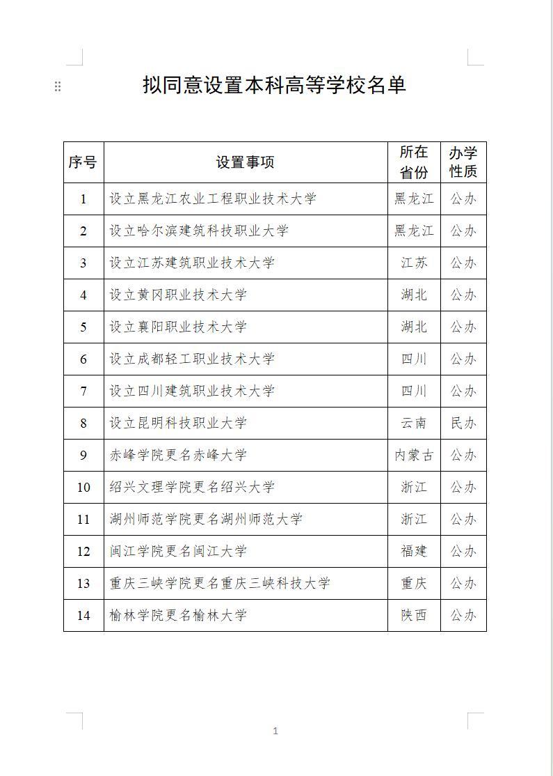 \r\n\u003c/a> -->\r\n","topAd":"\u003cdiv style=\"display:none\">\r\n\u003ca href=\"http://m.yumqqxq.cn/c/8if5o85BMMc\" target=\"_blank\" rel=\"noopener noreferrer\">\r\n\t\u003cimg src=\"http://x0.ifengimg.com/ucms/2025_16/EC4188F2C122C80153370CD0C9D6719401C58B33_size141_w1000_h90.jpg\" alt=\"文物三候 | 谷雨至,百谷潤;谷雨至,萬物生\"/>\r\n\u003c/a>\u003c/div>","floatAd":[],"newsList":[],"logoAd":[],"infoAd":[],"chipObj":{"asideAd5":"160455","contentBottomAd":"160449","asideAd4":"160454","picNews":"195259","asideAd3":"160453","searchPath":"200-203-","hardAd":"160450","recommend":"195258","video":"195129","asideAd2":"160452","asideAd1":"160451","topAd":"160447","floatAd":"160459","newsList":"195128","logoAd":"160448","infoAd":"195125"},"hostname":"m.yumqqxq.cn","docData":{"type":"article","noffhFlag":false,"fhhAccountDetail":{"type":"vampire","cateSource":"","isShowSign":0,"parentid":"0","parentname":"傳媒","cateid":"749945","catename":"鳳凰網陜西","logo":"https://x0.ifengimg.com/ucms/2023_23/DC79D783987CAF74142821D7CBB4ECCC48CBBE18_size8_w200_h200.jpg","description":"鳳凰網陜西的鳳凰號.","api":"http://api.3g.ifeng.com/api_wemedia_list?cid=749945","show_link":1,"share_url":"https://share.iclient.ifeng.com/share_zmt_home?tag=home&cid=749945","eAccountId":749945,"status":1,"honorName":"","honorImg":"http://x0.ifengimg.com/cmpp/2020/0907/1a8b50ea7b17cb0size3_w42_h42.png","honorImg_night":"http://x0.ifengimg.com/cmpp/2020/0907/b803b8509474e6asize3_w42_h42.png","forbidFollow":0,"forbidJump":0,"fhtId":"84876134","view":1,"sourceFrom":"","declare":"","originalName":"","redirectTab":"article","authorUrl":"https://ishare.ifeng.com/mediaShare/home/749945/media","newsTime":"2026-01-13 11:20:02","lastArticleAddress":"來自陜西"},"logo":{"logo":"http://x0.ifengimg.com/ucms/2020_35/047893747872F2451CE6A94069E0035D20860647_w322_h54.png","title":"陜西"},"domain":"m.yumqqxq.cn","base62Id":"8psPvjPjtTj","breadCrumbdata":[{"url":"/shanklist/200-/","title":"地方站"},{"url":"http://m.yumqqxq.cn/","title":"陜西"},{"url":"http://m.yumqqxq.cn/shanklist/200-203-216594-/","title":"資訊"}],"searchPath":"200-203-216594-","title":"正在公示!陜西將新增一所大學","newsTime":"2026-01-13 11:20:02","wemediaEAccountId":"749945","source":"","sourceUrl":"","author":"","summary":"正在公示!陜西將新增一所大學","imagesInContent":[{"size":68,"width":1011,"url":"https://x0.ifengimg.com/ucms/2026_03/D06E801DDC11B788BBF5FD3095248A333F27D4D1_size68_w1011_h875.jpg","height":875},{"size":84,"width":795,"url":"https://x0.ifengimg.com/ucms/2026_03/18390BDB6EF0B7A6791D64CBA1A09D663A7555BC_size84_w795_h1114.jpg","height":1114},{"size":96,"width":1035,"url":"https://x0.ifengimg.com/ucms/2026_03/CB091703A002E03A9F17DF280777BF25D5D9F2F4_size96_w1035_h582.jpg","height":582}],"bdImg":"http://d.ifengimg.com/w121_h75_q90/x0.ifengimg.com/ucms/2026_03/D06E801DDC11B788BBF5FD3095248A333F27D4D1_size68_w1011_h875.jpg","pcUrl":"http://m.yumqqxq.cn/c/8psPvjPjtTj","url":"http://m.yumqqxq.cn/c/8psPvjPjtTj","commentUrl":"ucms_8psPvjPjtTj","skey":"e51cb4","voteId":"ucms_8psPvjPjtTj","isOriginal":"0","contentData":{"contentList":[{"data":"\u003cp>1月12日,教育部發展規劃司發布《關于擬同意設置本科高等學校的公示》。\u003c/p>\u003cp>\u003cimg src=\"https://x0.ifengimg.com/ucms/2026_03/D06E801DDC11B788BBF5FD3095248A333F27D4D1_size68_w1011_h875.jpg\" />\u003c/p>\u003cp>公示稱,根據《中華人民共和國高等教育法》《普通高等學校設置暫行條例》《普通本科學校設置暫行規定》《本科層次職業學校設置標準(試行)》等有關規定,經教育部黨組會議審議,擬同意設置黑龍江農業工程職業技術大學等14所學校,現予公示。公示時間為2026年1月12日至1月16日。\u003c/p>\u003cp>\u003cimg src=\"https://x0.ifengimg.com/ucms/2026_03/18390BDB6EF0B7A6791D64CBA1A09D663A7555BC_size84_w795_h1114.jpg\" />\u003c/p>\u003cp>此次公示的擬同意設置本科高等學校名單中,包括“榆林學院更名榆林大學”。\u003c/p>\u003cp>\u003cimg src=\"https://x0.ifengimg.com/ucms/2026_03/CB091703A002E03A9F17DF280777BF25D5D9F2F4_size96_w1035_h582.jpg\" />\u003c/p>\u003cp>榆林學院是一所以工學、農學、社會學科為主,工、管、文、理、農、法等學科協調發展的省屬本科院校,是榆林市唯一省屬本科院校。\u003c/p>\u003cp>據榆林學院官網介紹,學校從綏德師范走來,辦學歷史可追溯至1923年創建的陜西省立第四師范學校。2003年經教育部批準升格為本科院校,2018年被陜西省確定為一流應用型本科院校建設單位,被國務院學位委員會確定為碩士學位授權單位。\u003c/p>\u003cp>學校現有榆陽、綏德師范和科創新城三個校區,產權占地面積1518.87畝,校舍建筑產權登記面積50.38萬平方米,設有16個二級學院,54個本科專業(含2個中外合作辦學項目),現有全日制在校生14616人,其中全日制本科生13569人,碩士研究生988人,學歷教育留學生59人。與西北農林科技大學、西北大學、延安大學等累計聯合培養研究生479人。學校現有教職員工1223人,專任教師957人。專任教師中具有碩士及以上學位者859人,具有高級專業技術職務者577人,具有博士學位者360人。\u003c/p>\u003cp>來源:教育部 榆林學院網站 中國教育在線\u003c/p>","type":"text"}],"currentPage":0,"pageSize":1},"editorName":"滿政達","faceUrl":"http://ishare.ifeng.com/mediaShare/home/749945/media","vestAccountDetail":{},"subscribe":{"type":"vampire","cateSource":"","isShowSign":0,"parentid":"0","parentname":"傳媒","cateid":"749945","catename":"鳳凰網陜西","logo":"https://x0.ifengimg.com/ucms/2023_23/DC79D783987CAF74142821D7CBB4ECCC48CBBE18_size8_w200_h200.jpg","description":"鳳凰網陜西的鳳凰號.","api":"http://api.3g.ifeng.com/api_wemedia_list?cid=749945","show_link":1,"share_url":"https://share.iclient.ifeng