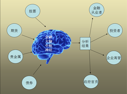 金融大腦互聯(lián)網(wǎng)正向著與人類大腦高度相似的方向進(jìn)化,它將具備自己的視覺、聽覺、觸覺、運(yùn)動神經(jīng)系統(tǒng),也會擁有自己的記憶神經(jīng)系統(tǒng)、中樞神經(jīng)系統(tǒng)、自主神經(jīng)系統(tǒng),可以稱之為互聯(lián)網(wǎng)虛擬大腦。同時另一方面,人腦至少在數(shù)萬年以前就已經(jīng)進(jìn)化出所有的互聯(lián)網(wǎng)功能,不斷發(fā)展的互聯(lián)網(wǎng)將幫助神經(jīng)學(xué)科學(xué)家揭開大腦的秘密。科學(xué)實(shí)驗(yàn)將證明大腦中也經(jīng)擁有Google一樣的搜索引擎,F(xiàn)acebook一樣的SNS系統(tǒng),IPv4一樣的地址編碼系統(tǒng),思科一樣的路由系統(tǒng)。互聯(lián)網(wǎng)時代科技與腦科學(xué)越來越緊密,開展”大腦”計(jì)劃正在成為未來趨勢。越來越多的跡象表明,互聯(lián)網(wǎng)與腦科學(xué)具有很強(qiáng)的相關(guān)性。2007年中國科學(xué)院虛擬經(jīng)濟(jì)與數(shù)據(jù)科學(xué)研究中心開展的互聯(lián)網(wǎng)進(jìn)化論研究中指出,互聯(lián)網(wǎng)與腦科學(xué)具有很強(qiáng)的相關(guān)性,并繪制出互聯(lián)網(wǎng)虛擬大腦結(jié)構(gòu)圖。2011年開始,谷歌啟動了“谷歌大腦”計(jì)劃,計(jì)劃以谷歌大腦為中樞神經(jīng)系統(tǒng),為無人汽車,工廠機(jī)器人,智能家居,智能眼鏡提供源源不斷的數(shù)據(jù)支持;在國內(nèi),百度也在今年5月推出“百度大腦”計(jì)劃。根據(jù)李彥宏的說法,“百度大腦”的智商已經(jīng)達(dá)到2-3歲的小孩水平。事實(shí)上,從本文開頭多描述的案例總可以看出,金融領(lǐng)域的發(fā)展也開始出現(xiàn)于大腦越來越多的相似性,它們具備自己的視覺、聽覺、觸覺和運(yùn)用神經(jīng)系統(tǒng),也擁有自己的記憶神經(jīng)系統(tǒng)、中樞神經(jīng)系統(tǒng)、自主神經(jīng)系統(tǒng)和學(xué)習(xí)能力。它們用無數(shù)的觸角去金融,期貨,經(jīng)濟(jì)等不同領(lǐng)域抓取信息和數(shù)據(jù),將獲得的信息反射回這些人工智能系統(tǒng)中樞進(jìn)行篩選和分析,最終得出結(jié)論和決策,然后將這些結(jié)論和決策通過互聯(lián)網(wǎng),微信,社區(qū),新媒體等觸角反射給金融領(lǐng)域的機(jī)構(gòu)和從業(yè)人員,從而形成一個類似人腦的閉環(huán)。我們可以稱這些類人腦金融閉環(huán)系統(tǒng)為金融大腦。