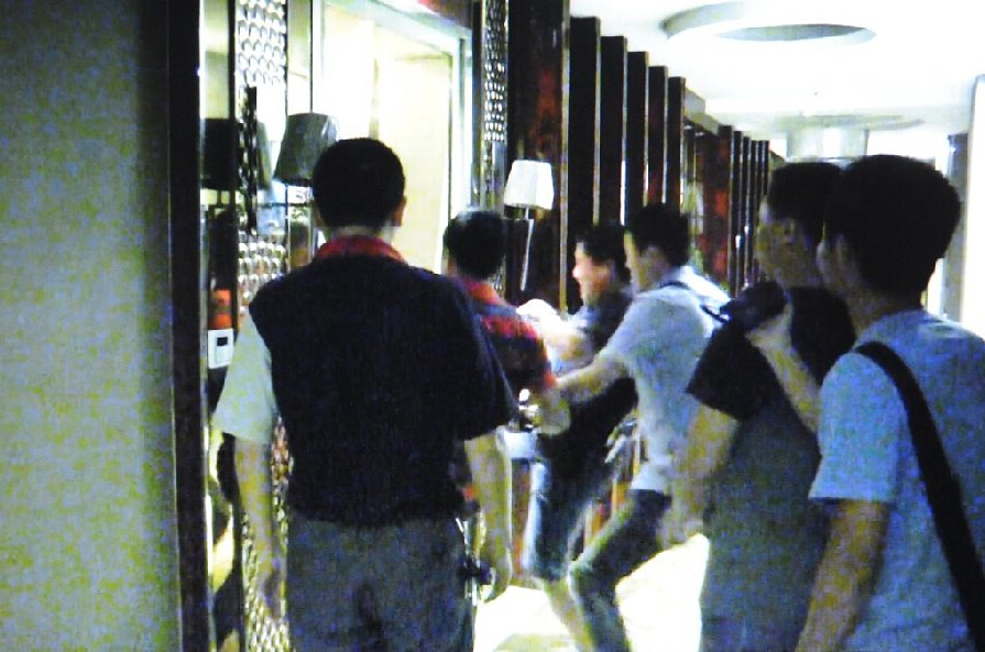2014年6月30日凌晨,貴陽市公安局經(jīng)開分局便衣民警在貴陽市一家酒店,對犯罪嫌疑人實施抓捕行動。(截屏圖)