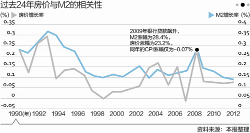 房價與M2漲幅的這種高度相關(guān)性在現(xiàn)實中也得以印證。