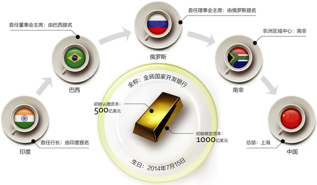 另外,中印以外的其他三國也獲得了自己的“角色”:非洲區域中心將設在南非,首任理事會主席將由俄羅斯提名,首任董事會主席將由巴西提名。至于行長的輪值順序,則是印度、巴西、俄羅斯、南非和中國,換屆周期為五年。