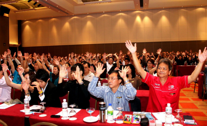 這還是先得從參加論壇的學員說起。這些學員幾乎都是沖著陳大師的名氣而來,很多人此行目的就是為了見上大師一面,至少在精神層面已經認可了陳大師的精神導師身份。在這群學員當中,除了少數已經成功的人士需要去鍍金跟陳安之拓展人脈外,大部分還是企業的一線營銷人員或者碰到生存發展瓶頸的企業老板,你也可以說他們是一個loser,他們有強烈的自我價值認同感,希望被人被社會認可。陳安之的成功案例就像精神鴉片能瞬間激活他們的大腦,使之得到成功的快感。 我們再從視線回到培訓現場。搞成功學的都是國內頂尖心理學大師,他們知道如何利用燈光、音樂、語言、動作等去控制暗示學員。在音樂上,激昂向上的音樂是催人進入學習狀態的催眠曲,具有極強的煽動力。在語言上,陳大師最常說的口頭禪是“有還是沒有”、“對不對”、“要大聲說出來”、“yes”等暗示性的語言。 在動作上,他會經常舉起手或者說伸出食指做強調。當所有這些因素累加就會使學員陷入心理學上說的“集體無意識”狀態。在如此封閉的環境下,學員會受到周圍氛圍感染作出和平時本性完全不同的事情,這也就不難理解為什么會有學員愿意掏100萬做弟子,如果換做另外一種環境,在如此短的時間做出100萬的決策幾乎是不現實的。