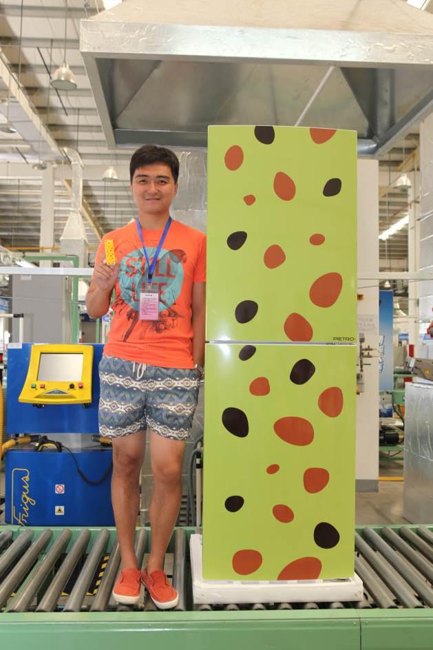 雖然身在巴西,可是Pietro_Lau一直都在關注著自己設計的這臺冰箱,在最終挑選了長頸鹿斑紋設計后,裝機前期準備工作就交給了專業設計師。他說:“沒有親手組裝冰箱確實挺遺憾的,不過看到朋友在微博分享的裝機過程和去海爾的體驗,通過微博看到自己設計的冰箱一步一步地被組裝起來,心里還真有點小激動呢!”