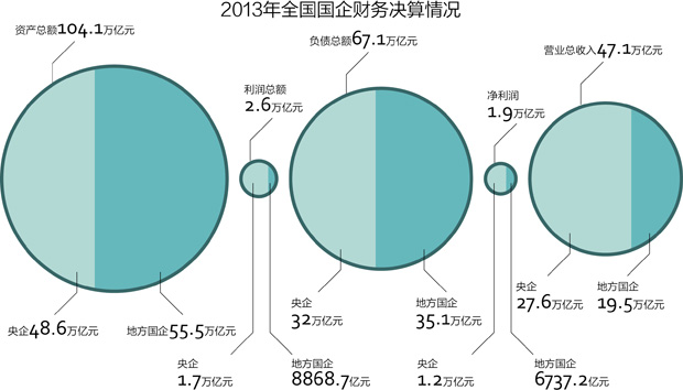 來(lái)自財(cái)政部的數(shù)據(jù)顯示,2013年全國(guó)國(guó)有企業(yè)資產(chǎn)總額104.1萬(wàn)億元,同比增長(zhǎng)16.3%。