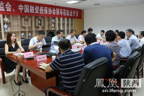 2014年7月28日至30日,由中國融資擔保業協會專職副會長文政、中國銀監會融資擔保部處長樊衛東、中國融資擔保業協會研究培訓部主任王喆、中國融資擔保業協會信電統計與宣傳部李光翊及金融時報記者胡萍組成的中國融資擔保協會陜西調研組赴陜對陜西金融及擔保行業進行考察。29日,調研組前往陜西省金融控股集團有限公司召開陜西省融資擔保機構互聯網金融業務座談會,陜西省金控集團董事長權永生、陜西省金融工作辦公室(省金融辦)副巡視員張普社、省金融辦金融服務處處長劉光明、陜西金開貸金融服務有限公司(金開貸)執行董事兼總經理時晨、金開貸公司副總經理段嘉奇、省金融辦金融服務處等領導出席座談會,同時,也邀請到西安、咸陽重點融資擔保公司參會。