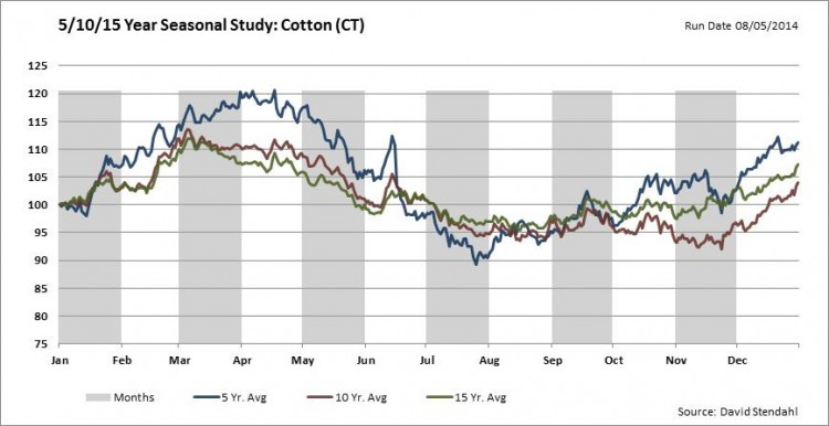 如果觀察多個數據,首先,棉花價格或許能夠從潛在的價格超跌中得到支撐;其次,商業交易者也開始表現出強烈的看漲興趣;最后,季節性趨勢也表明,底部一般都是在一年當中的這個時間段形成。目前,這并不意味著價格必須從此崛起,如果價格的確走升,那么就需要觀察其是否可以回到2014年的前高,并測試新的阻力線。