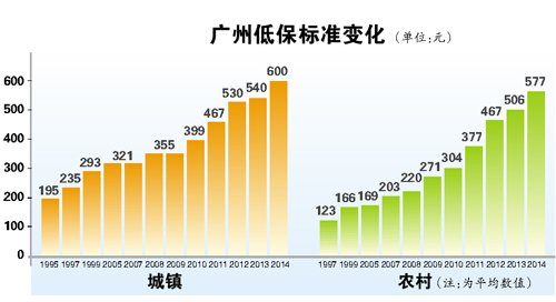 廣州最新低保標準從今年1月1日起實施。從今年1月1日起,全市城鎮低保標準從每月540元提高到600元。番禺、蘿崗、南沙區農村低保標準從每月540元提高到600元;白云區、花都區、從化市、增城市從每月480元提高到560元。未達標的月份,按新舊標準的差額予以補發低保金。