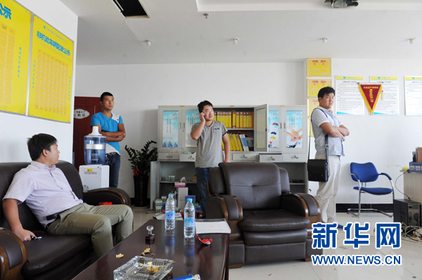 在興麟房產銀川總公司,幾位前來討要首付款的購房者在等待(9月4日攝)。新華社記者 彭昭之 攝