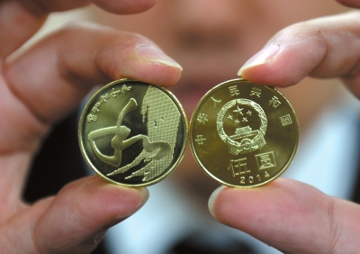 根據(jù)公告,此次發(fā)行的普通紀(jì)念幣面額為5元,直徑為30毫米,材質(zhì)為黃銅合金,全國發(fā)行數(shù)量7000萬枚。紀(jì)念幣正面主景圖案為中華人民共和國國徽,內(nèi)緣上方刊國名“中華人民共和國”,下方刊面額“伍圓”及年份“2014”;背面主景圖案為草書的和字,襯景圖案為書法的飛白,內(nèi)緣左上方刊和字的5種書法體。該普通紀(jì)念幣采用隱形圖案雕刻、微縮文字和全齒間隔半齒等防偽技術(shù),與現(xiàn)行人民幣職能相同,與同面額人民幣等值流通。