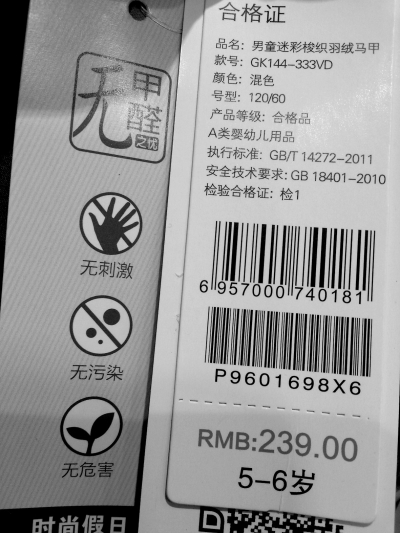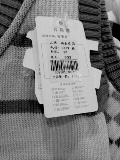 ④合格的童裝標(biāo)簽。京華時報記者 胡笑紅攝