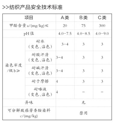 國家紡織制品質(zhì)量監(jiān)督檢驗中心副主任郭文松向記者介紹,按照新國標(biāo),服裝可分為A、B、C三個安全級別,明確只有A類產(chǎn)品可供嬰幼兒穿著;直接接觸皮膚的服裝應(yīng)符合B類產(chǎn)品的技術(shù)要求,非直接接觸皮膚的服裝應(yīng)符合C類產(chǎn)品技術(shù)要求。但后二者如果是嬰幼兒服裝的話,也必須達(dá)到A類產(chǎn)品的技術(shù)要求。