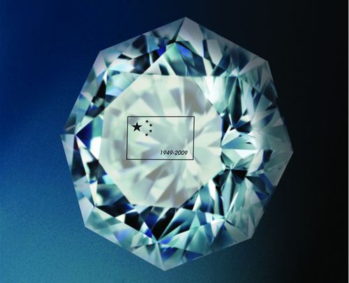 在這顆鉆石的臺面上,印有激光印刻的中國國旗,以及"1949-2009"的字樣,以紀念新中國成立60