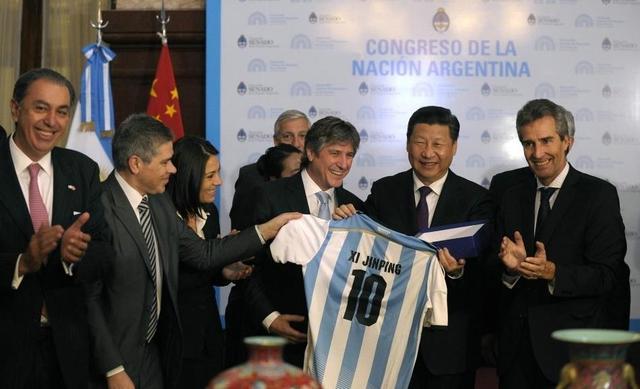 2014年7月,習近平訪問阿根廷。在和阿根廷副總統兼參議長布杜及眾議長多明格斯舉行會談時,習近平特別提到阿根廷足球隊在世界杯奪得亞軍,他說:“剛才眾議長先生問我是否喜歡足球,我說我非常喜歡足球。他也祝愿中國能夠早日舉辦一屆世界杯,這正是我的愿望。但是我們足球的發展,還希望同阿根廷加強交流合作,靠你們的幫助,提高我們的水平。”