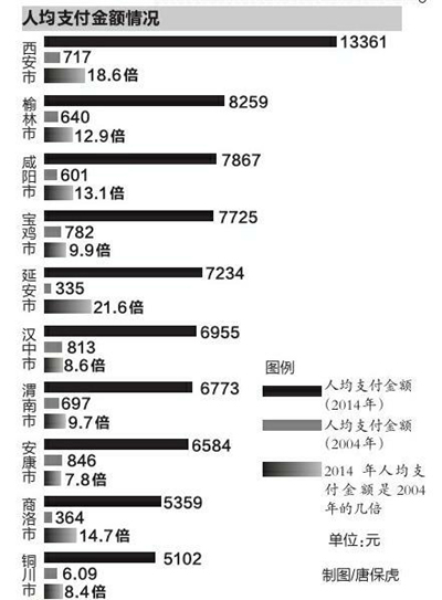 2004年陜西人均支付金額712元