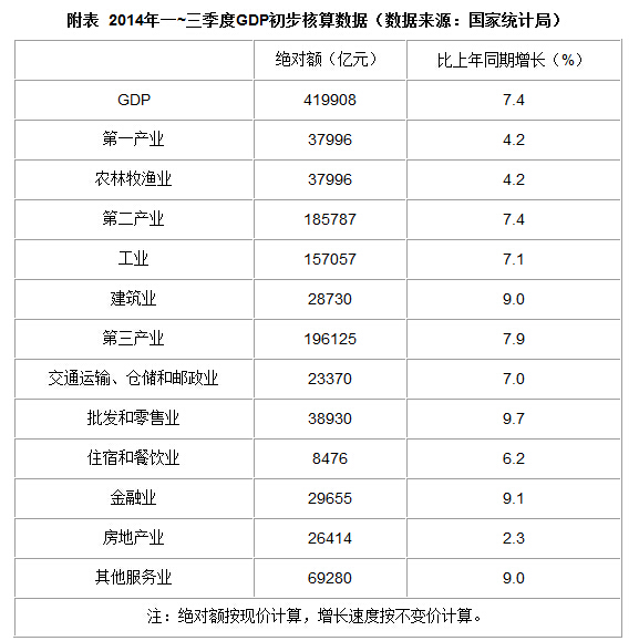 今年前三季度,中國經濟同比增長7.4%。前述觀察人士對本報稱,在GDP的后面,還應該看到今年城鎮就業持續增加、消費價格總體穩定、貨幣信貸增勢平穩,各項主要經濟指標處于合理區間。
