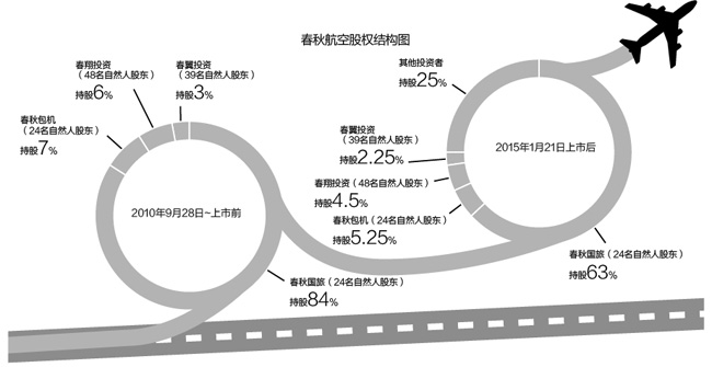 而此次發(fā)行后,春秋國旅、春秋包機(jī)、春翔投資、春翼投資將分別持有春秋航空63%、5.25%、4.5%及2.25%股份,春秋航空董事長王正華作為實(shí)際控制人,只持有春秋國旅35.70%股權(quán)和春秋包機(jī)43.8%的股份。
