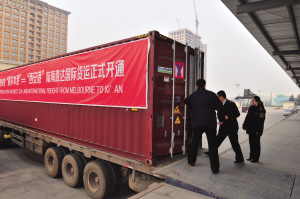 據記者了解,“西安港”的第一單陸海國際直達貨物——澳大利亞純牛奶,除了供應陜西市場外,還將以西安為核心,輻射西北以及中部地區。由此可見,東部沿海地區及東亞、南亞等地的貨物,會通過陸海直達送往“西安港”,以西安為中轉,分撥到中西部地區。長安大學教授、博導董千里表示,“西安港”有條件成為連接“一帶一路”戰略的重要國際中轉樞紐。 記者劉航閆鑫