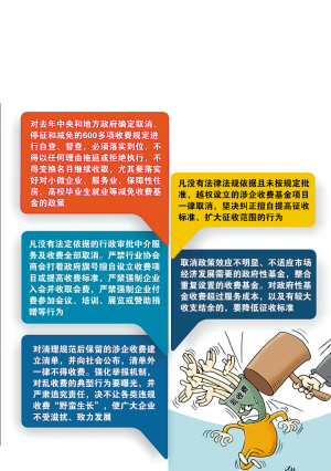 會議確定,用半年時間開展專項行動,在全國全面清理涉企行政事業性收費和政府性基金,涉及行政審批前置、市場監管和準入等具有強制壟斷性的經營服務性收費, 行業協會商會涉企收費等,挖掉亂收費的“病根”。一是對去年中央和地方政府確定取消、停征和減免的600多項收費規定進行自查、督查。二是凡沒有法律法規依據且未按規定批準,越權設立的涉企收費基金項目一律取消。三是凡沒有法定依據的行政審批中介服務及收費全部取消。四是取消政策效應不明顯、不適應市場經濟發展需要的政府性基金。五是對清理規范后保留的涉企收費建立清單,向社會公布,清單外一律不得收費。對亂收費的典型行為要曝光,決不讓各類違規收費“野蠻生長”。