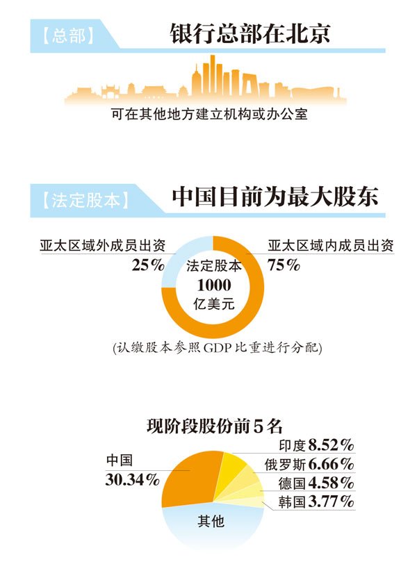 按照協定規定的原則計算,中國以297.804億美元的認繳股本和26.06%的投票權,居現階段亞投行第一大股東和投票權占比最高的國家。印度、俄羅斯分列第二、三大股東。