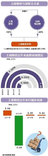 山西明邁特除是上海物貿租賃的倉庫責任方外,還是其經營合作伙伴。在此次存貨缺失中損失最大的上海物貿爐料,是上海物貿與山西明邁特的合資公司。其中上海物貿持有51%股權,山西明邁特持有49%股權。