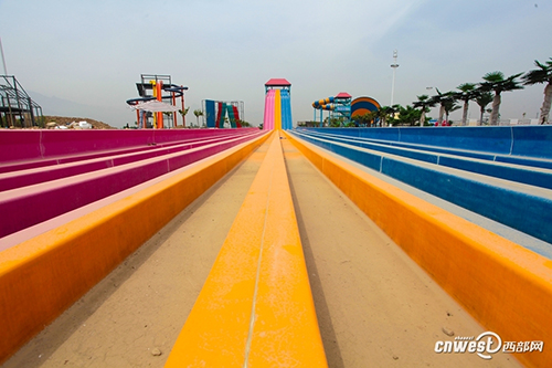5月8日,記者現場實拍迪比斯歡樂水世界大型項目:八彩競速滑梯。