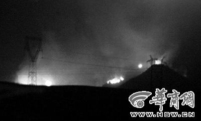 昨晚9 時許,藍田縣湯峪鎮森林火災現場華商報記者王樂攝