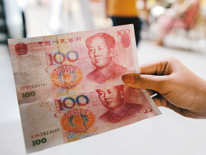 先拿出一張百元真鈔購物