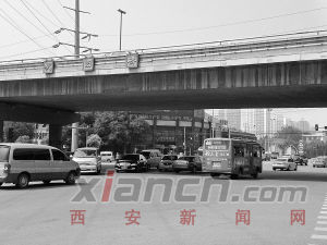 由于高新路口的紅綠燈沒有左轉(zhuǎn)信號(hào),因此綠燈放行時(shí),從勞動(dòng)路北來的左轉(zhuǎn)車輛便會(huì)和直行車一起向南行駛,可同時(shí)從高新路南來的直行車也開始放行,左轉(zhuǎn)車輛便與正對(duì)著的直行車輛起了沖突。左轉(zhuǎn)車想“插空”通行,直行車不讓,左轉(zhuǎn)車步步向前逼,直行車要經(jīng)過此處只得慢慢繞過去。因?yàn)榛ハ?ldquo;頂牛”, 兩個(gè)方向的車都很難通行,只有當(dāng)直行車差不多快走光時(shí)左轉(zhuǎn)車才得以一氣通過,桃園橋下就常常為此而堵車,秩序混亂。