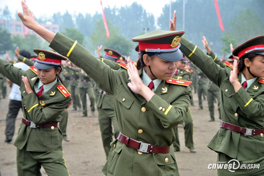 西安城建學(xué)院軍訓(xùn)表演 兩千女生齊跳“小蘋(píng)果”